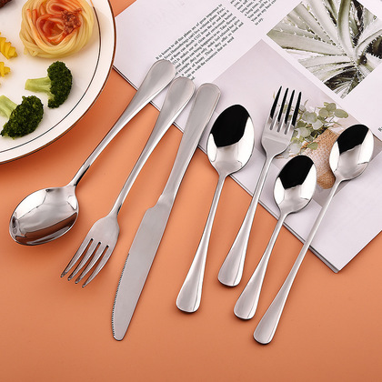 410 Stainless Steel Polished Handle Western Cutlery Knife Fork Spoon Hotel Cutlery Set Coffee Stirring Spoon Wholesale