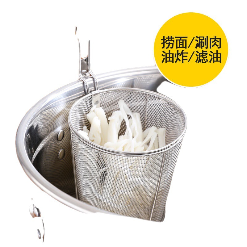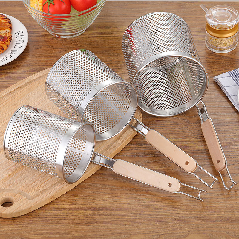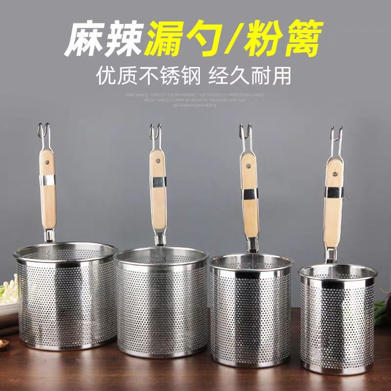 Stainless Steel Ladle with Strainer for Spicy Hot Pot, Noodle Strainer Ladle, Large Ladle with Mesh, Cooking Ladle with Strainer, Vegetable Strainer Basket for Boiling, Noodle Ladle with Drainer, Powdered Basket