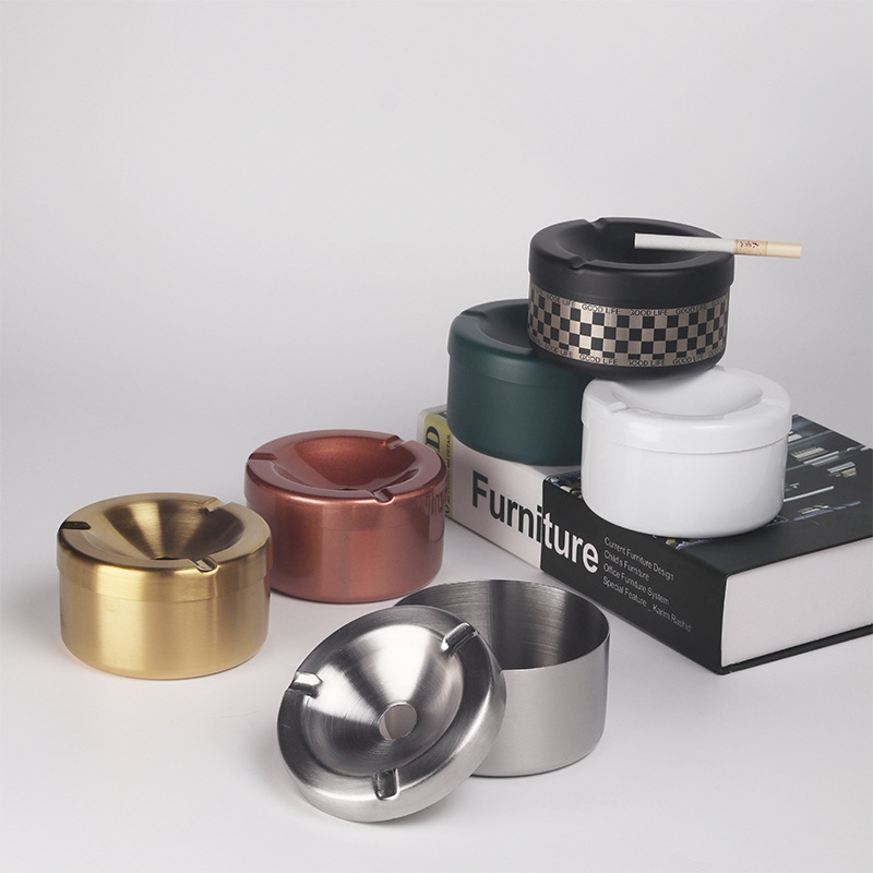 Vintage European-style Ashtray for Home Living Room, High Aesthetic Value, with Lid, Funnel Design to Prevent Ash and Odor from Flying